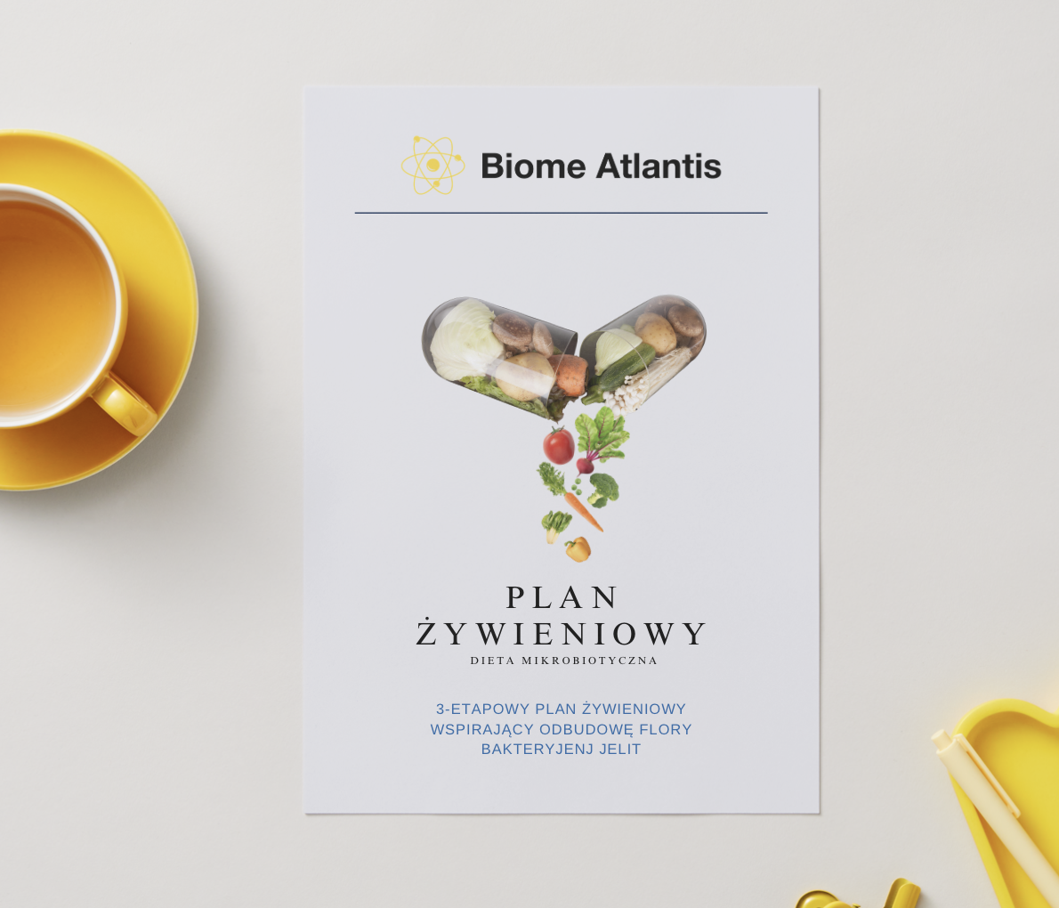 Plan żywieniowy Biome Atlantis to indywidualnie przygotowany jadłospis oparty na Twoim wyniku badania mikrobiomu, wytycznych dietetycznych oraz trzystopniowym Planie Odbudowy Mikrobioty. Dzięki niemu nie musisz samodzielnie „układać” posiłków z list dozwolonych i zakazanych produktów – otrzymujesz gotowy zestaw konkretnych dań na Etap 1, 2 i 3, dopasowany do Twojej sytuacji zdrowotnej, preferencji smakowych oraz ewentualnych alergii i problemów metabolicznych.